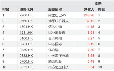南向资金方面,近7日南向资金大举流入港股科技龙头招财猫配资,阿里巴巴以超247亿港元位居净买入榜首,地平线机器人、比亚迪股份、中芯国际、优必选、腾讯控股也位居南向资金近7日净买入前十。