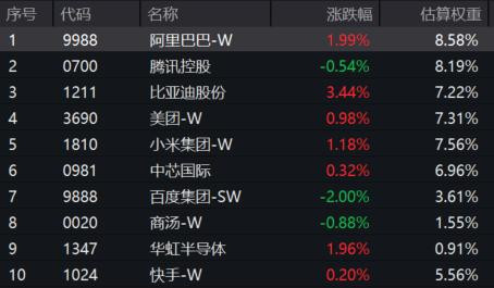 截至14:06,恒生科技ETF基金(513260)标的指数成分股多数飘红:比亚迪股份涨超3%,阿里巴巴、小米集团、华虹半导体涨超1%,美团、中芯国际、快手微涨。